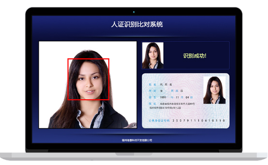 用人脸识别和身份証进行比对,不到一秒就已完成了身份的对比,人脸识别准确度不受年龄,发型、穿戴和五官微变化。