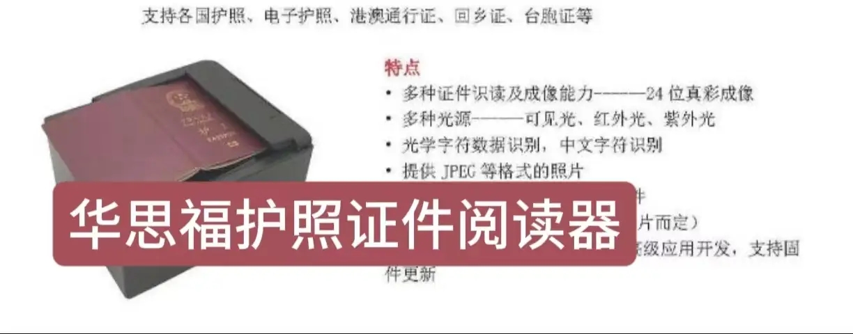 国产系统MRZ电子护照阅读器OCR证件识读机RFID证照识别仪-深圳华思福护照阅读仪器支持MRZ,RFID,OCR读取证件信息功能好处多多,深圳华思福技术融合的终极价值,是让证件核验从“人工费力的风险管控环节” 转变为“无感通过的数字化枢纽”对操作者: 避免机械劳动,专注高价值服务;对机构: 同时达成效率峰值提升满意度;对用户: 获得“交证即通行”的无感体验;这种技术整合,正在广泛用于出入境、酒店、金融、交通等行业的服务基准线——更快、更准、更安全,成为数字化服务的核心基础设施。深圳市华思福高新科技有限公司一直专注于多生物特征身份识别智能终端产品的研发、生产、销售和服务,经过多年的研发积累,在证件识别、人脸识别、来访人员识别管理 身份指纹验证等方面积累了丰富的技术和研发生产经验,研发了多款满足不同行业使用需求的身份证件识别智能终端,致力于为合作伙伴和集成商提供成熟稳定的、从“端”到“云”的身份证件识别智能终端应用解决方案。