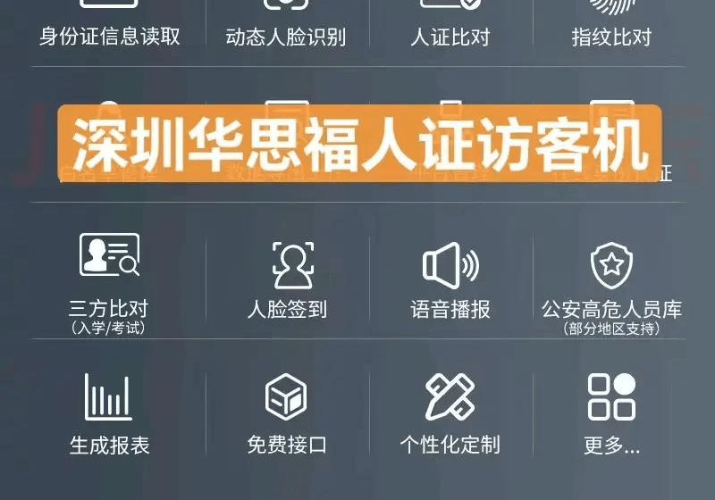 门岗访客机访客登记进场监控室WEB后台大屏实时显示在场内人员 离场后自动清除 用于严格管控进出区域,部队看守所等单位适用; 深圳华思福访客预约拜访,人证对比访客机;自动登记自动识别身份证访客系统 访客到访快速登记 门卫登记系统采用智能访客登记一体机,访客到达现场后,通过身份证在访客一体机上快速登记,无需人工手写登记,解决了人工手写登记麻烦,也支持微信预约访客登记, 以免人员多登记拥堵的情况出现;深圳华思福门卫自动登记访客一体机 数字化访客登记系统,主要应用于机关单位、军队、监狱、企业、学校、酒店、小区物业等场所的前台或门卫处。深圳华思福高科是集软、硬件研发、销售、集成、服务为一体化的高新技术科技企业。经过近十年的不懈的努力与发展,华思福高科已具有多项自主知识产权及软硬件著作权,,针对各行业应用情景开发了多功能多证件阅读器、人证核验设备、身份证指纹设备、人脸访客机等,广泛应用于通道闸机,多功能自助服务终端设备及人脸识别测温终端产品;与国内广大的项目集成商深度合作,广泛应用在公安、交通、医疗、教育、社保、民政、公共安全等领域,并深受合作伙伴及广大用户认可。